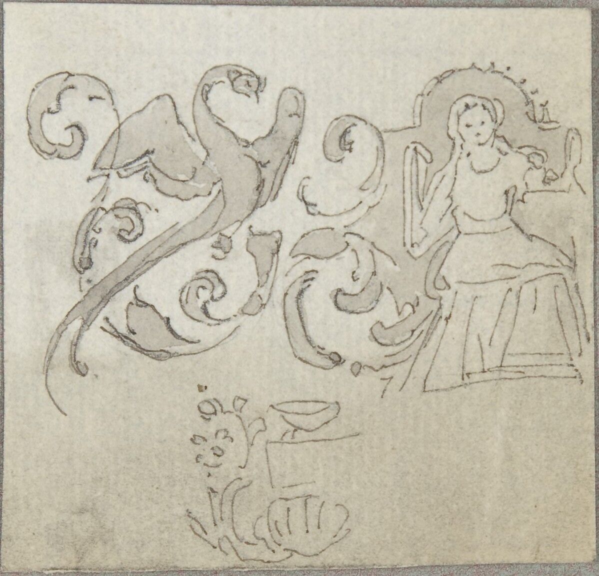 - Title: Sketch of Seated Female Figure with Foliate Decoration