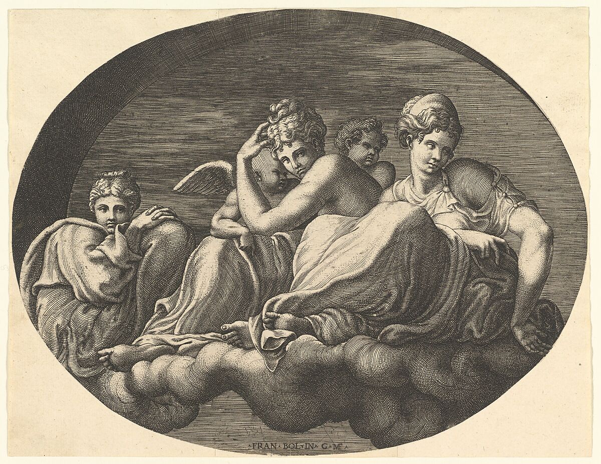 - Title: Venus and Cupid, two other goddesses and a putto, from a series of eight compositions after Francesco Primaticcio's designs for the ceiling of the Ulysses Gallery (destroyed 1738–39) at Fontainebleau