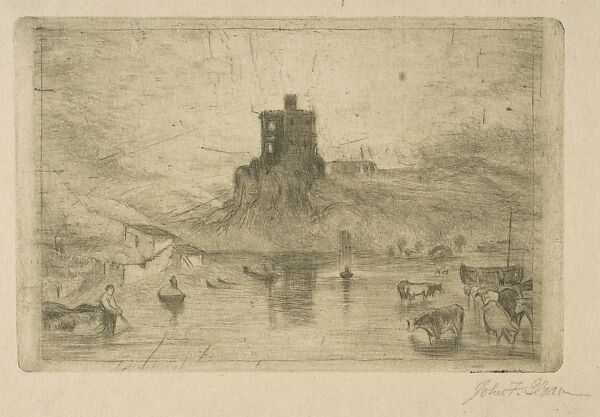 Earliest of Sloan's etchings, done when he was seventeen years old. The print is a copy of J.M.W. Turner's 'Norham Castle on the Tweed', of which two sepia drawings, two watercolors, and the etching, no. 57 of the 'Liber Studiorum' are known, see: Morse 1969, p. 22.
