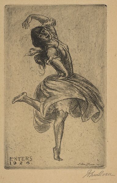 The first in a number of plates inspired by the dancer Angna Enters. This was the only one she posed for. The print was used as a New Year's card – the inscription, 'Enters 1926', is a pun welcoming in the New Year 1926, see: Morse 1969, p. 242.