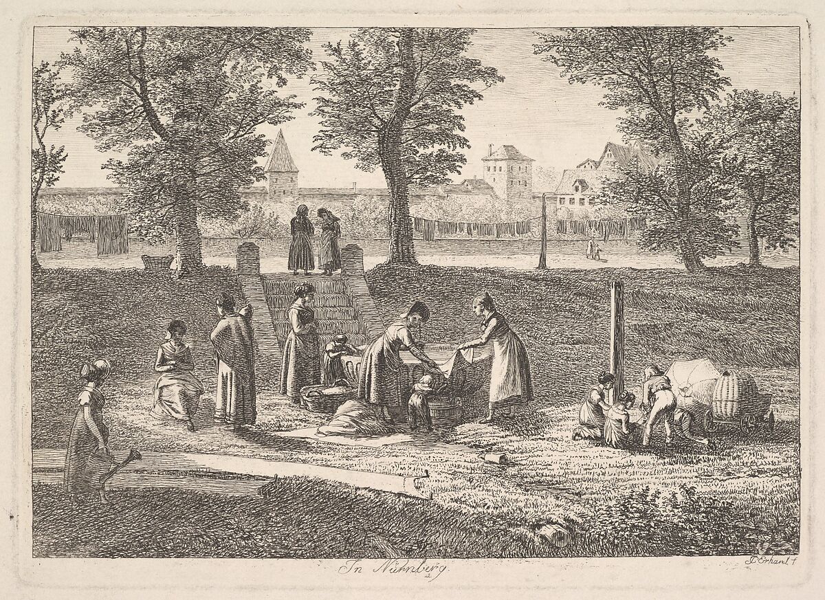 Outdoor Scene of Women in Domestic Activities in Nurnberg,