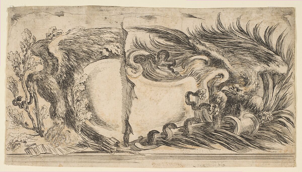 - Title: Two Different Halves of Cartouches Each Showing an Eagle Fighting a Serpent