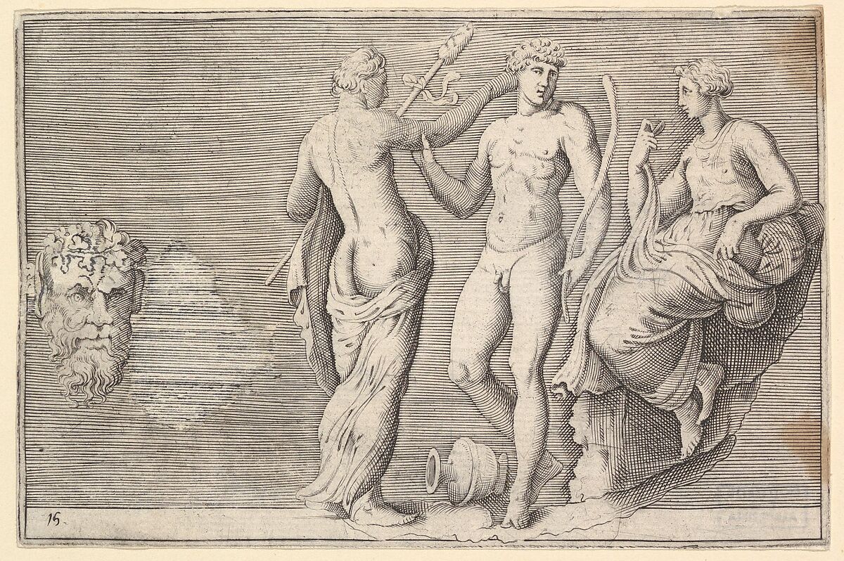 - Title: Head of Satyr and Three Figures, from "Ex Antiquis Cameorum et Gemmae Delineata/ Liber Secundus/et ab Enea Vico Parmen Incis"