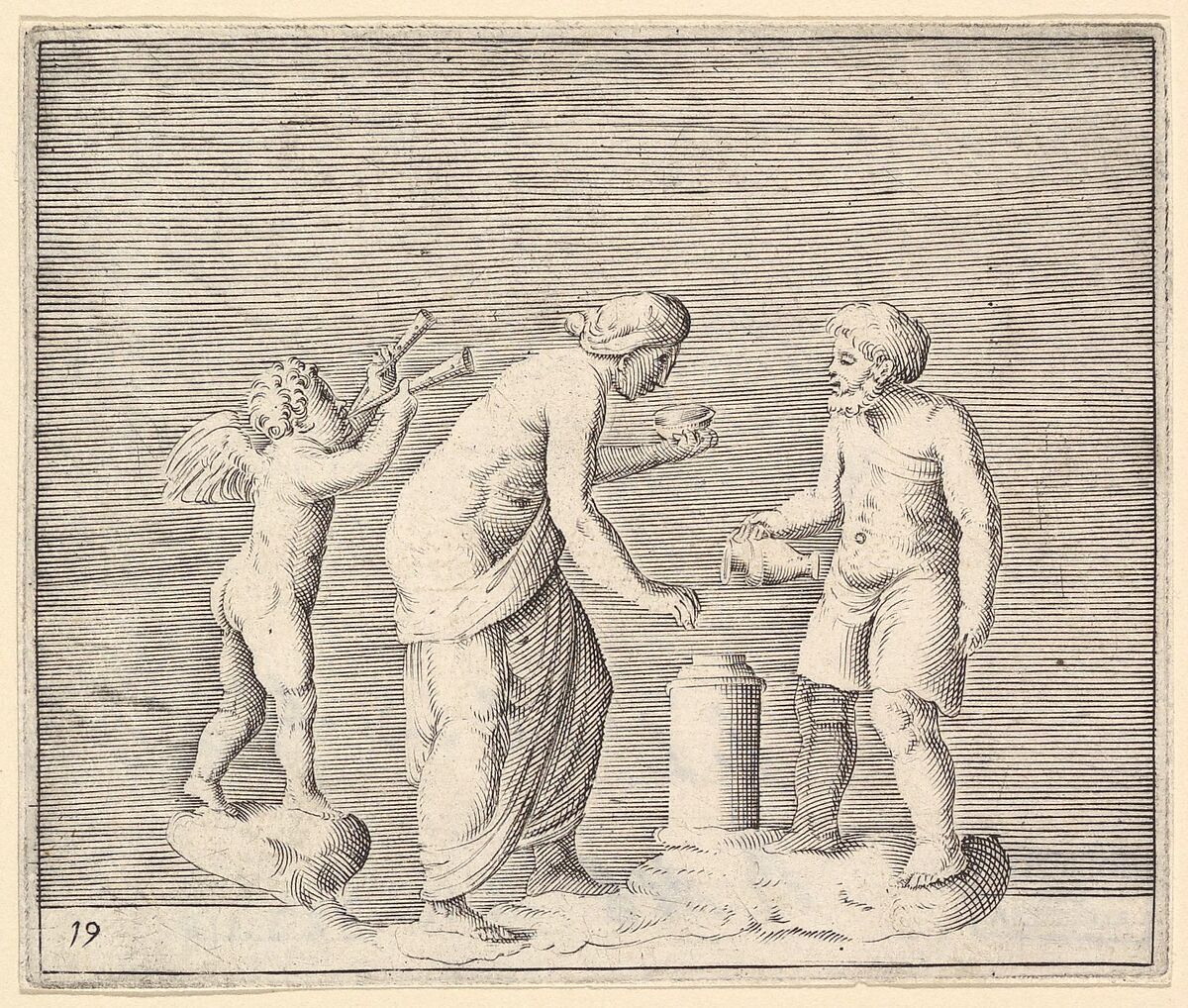 - Title: A Woman and Man Sacrificing in the Presence of Cupid, from "Ex Antiquis Cameorum et Gemmae Delineata/ Liber Secundus/et ab Enea Vico Parmen Incis"