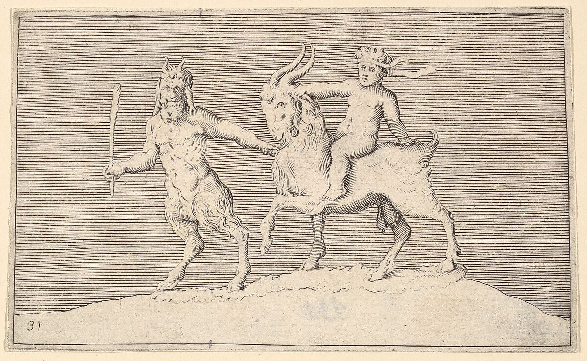 - Title: Satyr Leading Goat on which a Infant Rides, from "Ex Antiquis Cameorum et Gemmae Delineata"