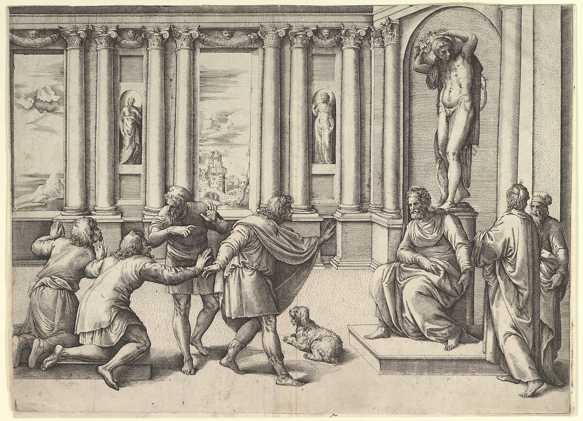 Man Seated Beneath a Statue of Bacchus, Receiving an Audience