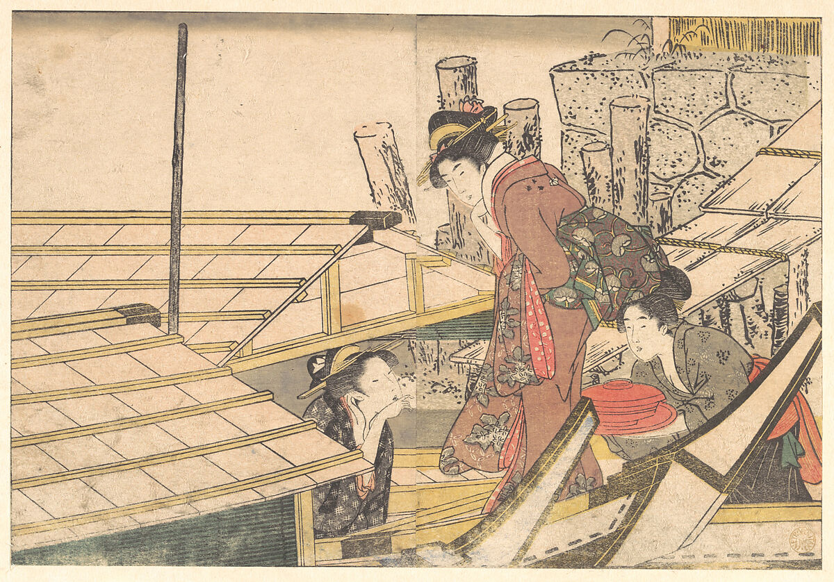 Girls Getting on Board a Boat, from the illustrated book Flowers of the Four Seasons
