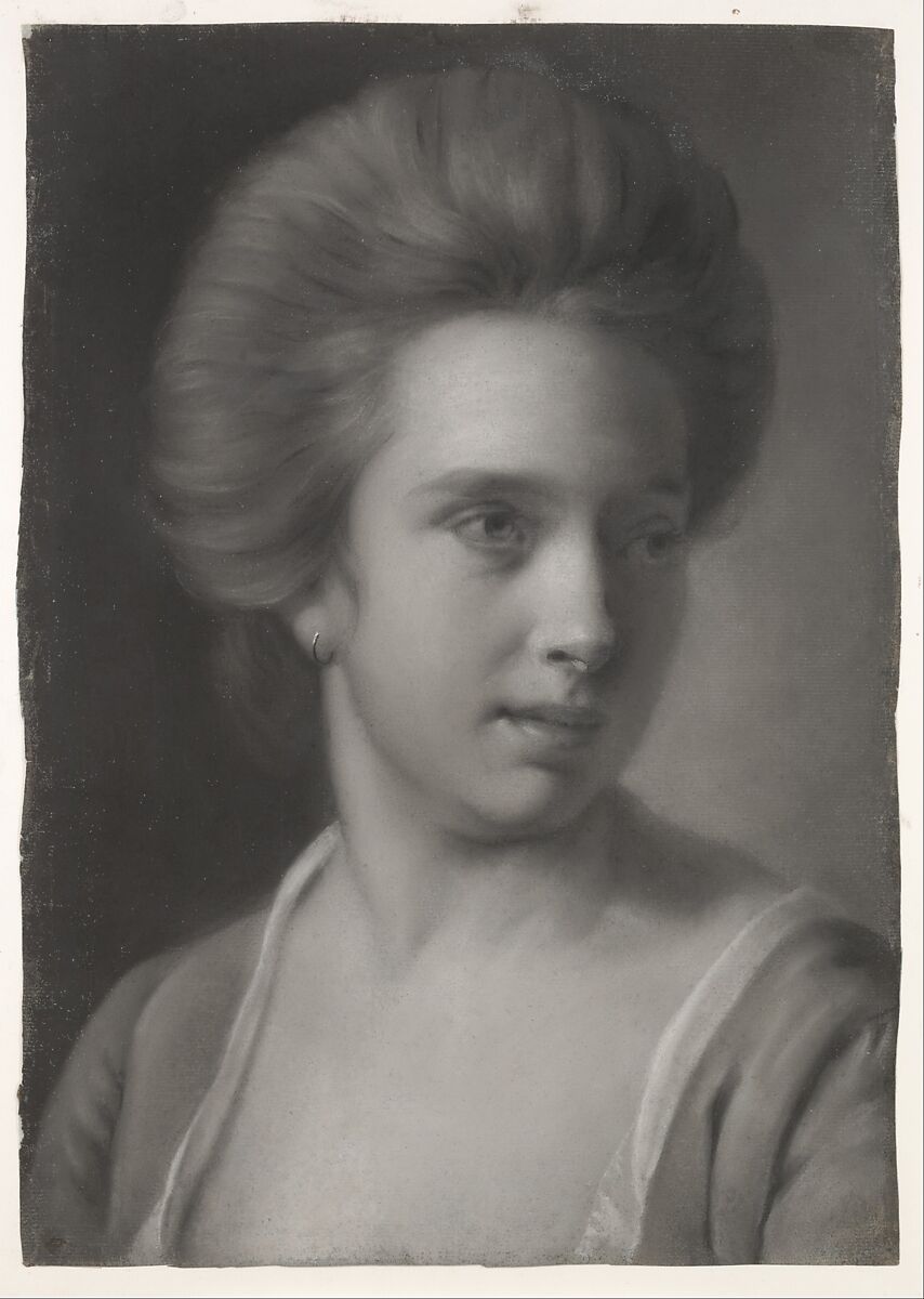 One of the most inventive artists of his generation, Wright sent striking night images of contemporary subjects to London from his home in Derby. This drawing belongs to a group of pastel and chalk head studies he made before departing for Italy in 1773. While the work demonstrates a masterful ability to capture a likeness, it has not been linked to a known sitter. Indeed, the open-necked gown and averted gaze suggest a character head rather than a portrait. Delicacy of touch and astonishing control of grisaille pastel allowed the artist to depict subtle transitions of light and varying textures. Careful finish is married to an impression of arrested movement, with strong raking light conveying a palpable sense of physical presence.
