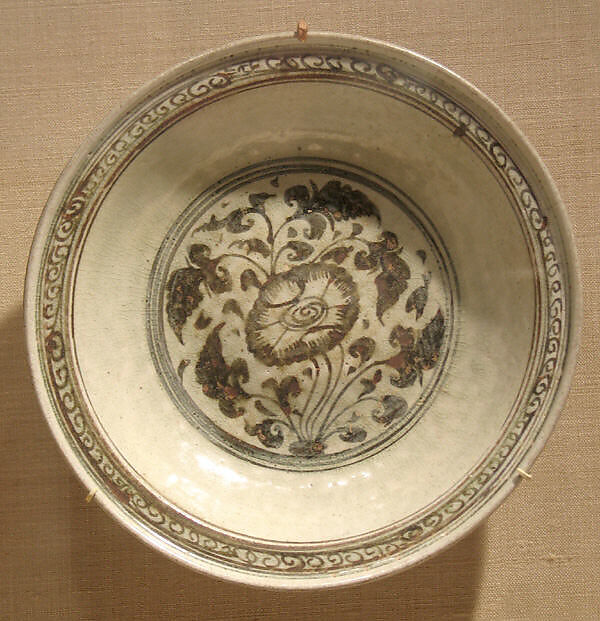 - Medium: Earthenware with cream white glaze and iron-brown underglaze decoration