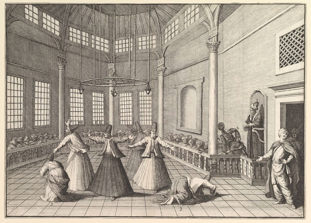 - Title: The Inside of a Mosque, the Dervishes Dancing (Aubry de La Mottraye's "Travels throughout Europe, Asia and into Part of Africa...," London, 1724, vol. I, pl. 16)