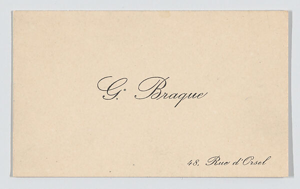 F. C. Schang donated 64 artists’ calling cards to The Met between 1977 and 1989. The calling cards are housed in an album that also includes Schang’s collection of stamps and other related ephemera. Calling cards derived from a custom, originating in England, in which messages were inscribed on the backs of playing cards. Cards made for the express purpose of sharing hand-written messages were manufactured beginning in the eighteenth century; by the early-nineteenth century, calling cards had become a popular means for sending well wishes, holiday greetings, condolences, and messages of courtship.