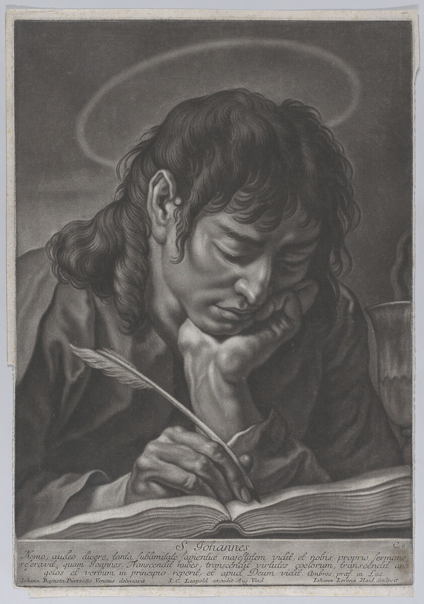 - Title: Saint John the Evangelist; head and shoulders, writing with a quill