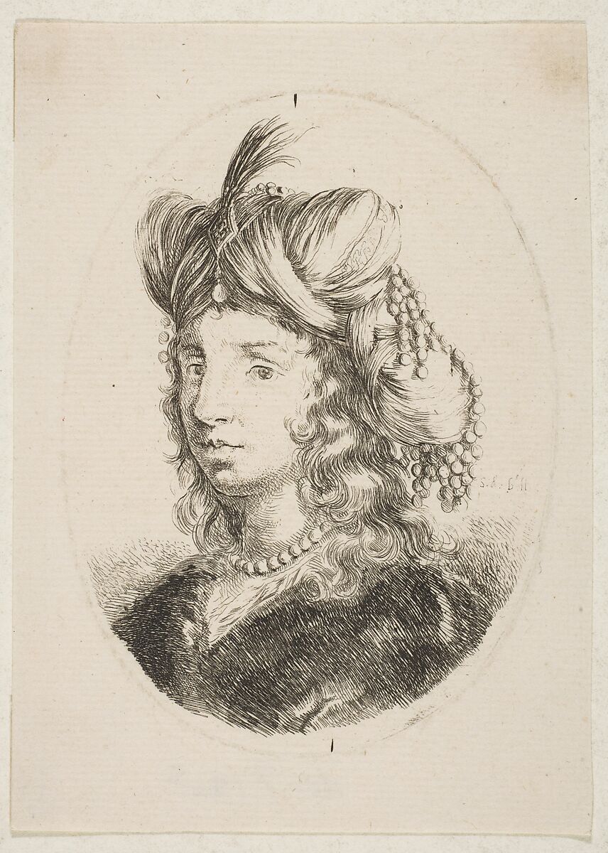- Title: Sultana wearing a pearl necklace and a turban, from 'Several heads in the Persian style' (Plusieurs têtes coiffées à la persienne)