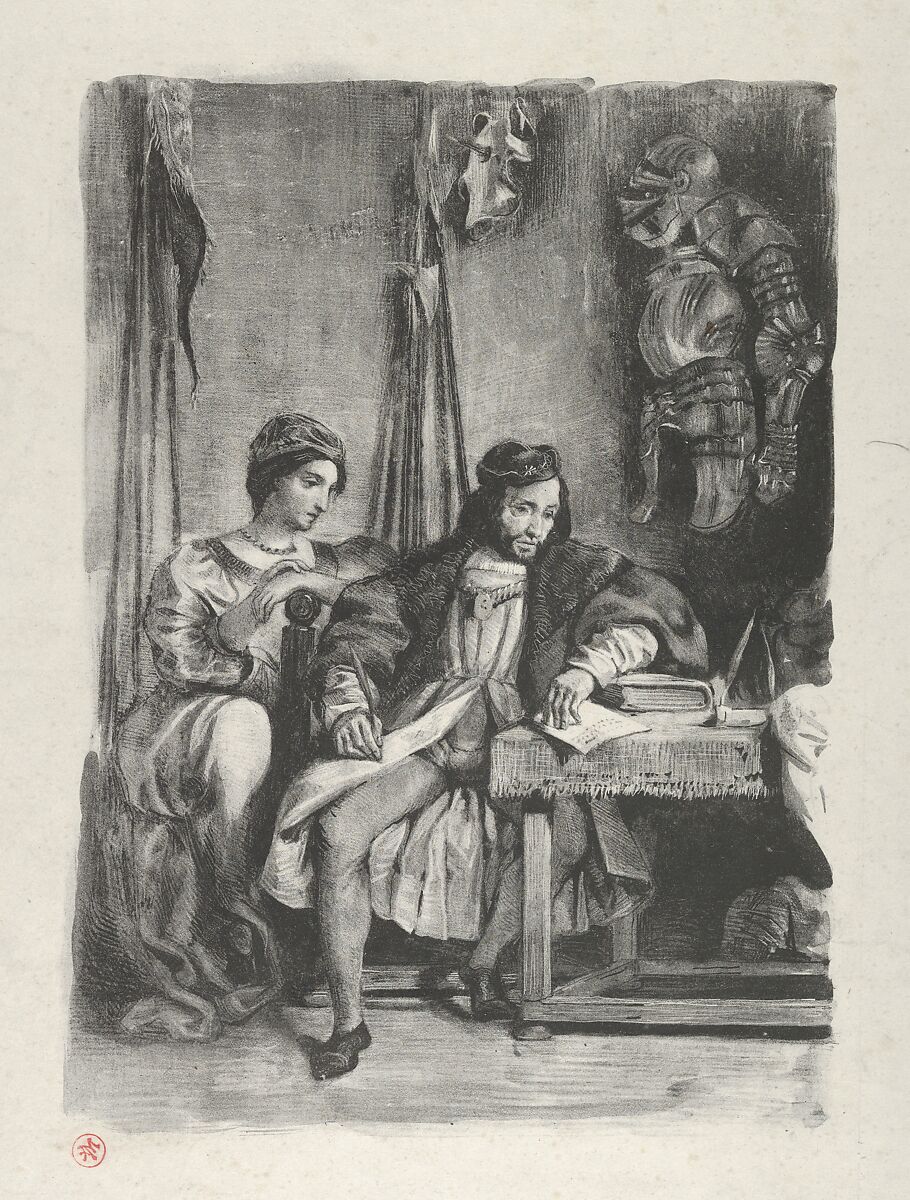 The subject of this print is based on a scene in Goethe's play (published in German in 1773; and French in 1823) that tells the story of the life of a German knight (1480-1562) who fought to regain the privileges of free knights, nullified by the emperor Maximilian I in 1495.
