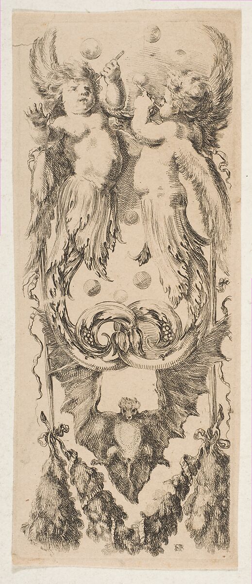 - Title: Two Winged Children with Bodies Turning into Ornament Blowing Bubbles