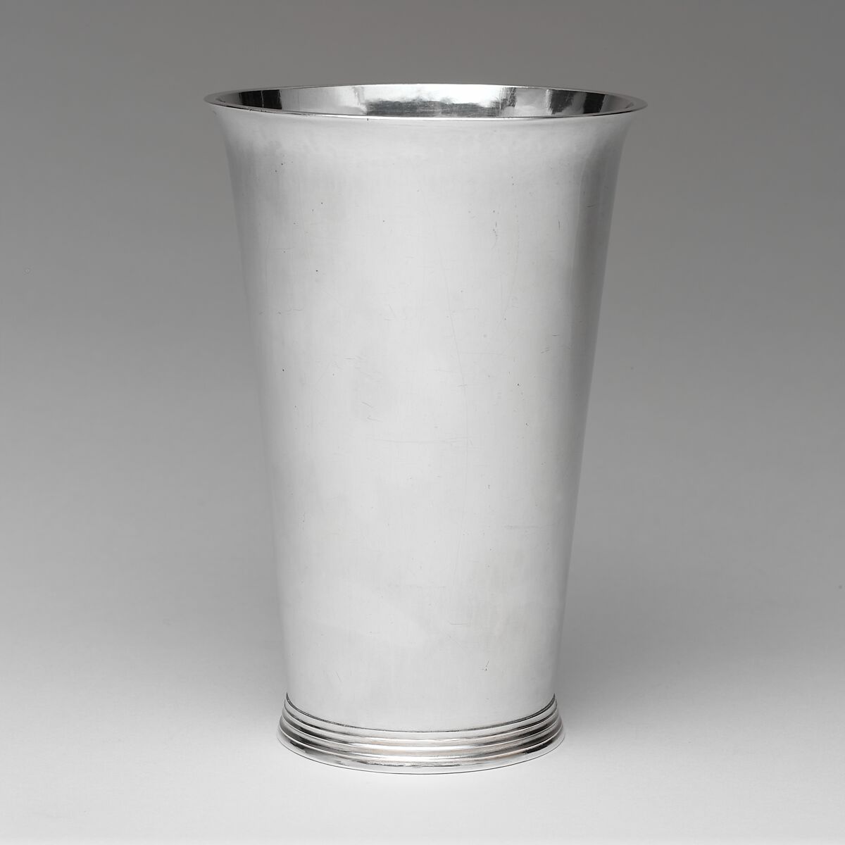 This beaker formerly belonged to the Reformed Dutch Church of Rochester in Accord, New York, where it was used as a communion vessel.