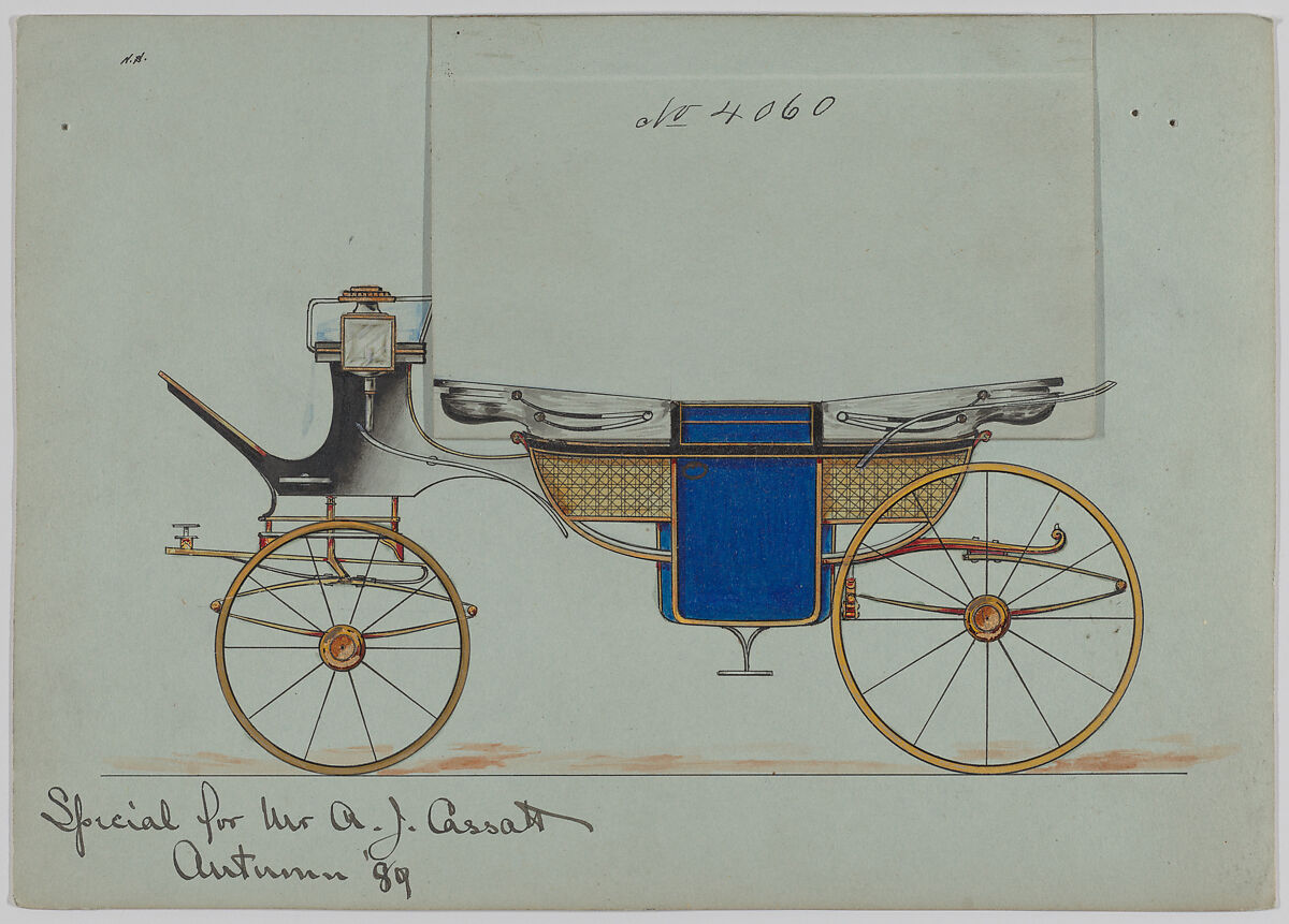 Talented draftsmen employed by the firm included Paul Steinbeck, Herman Stahmer and John Gribbon, the latter teaching at the Carriage Builders and Designers Technical School, which opened in 1880 and was housed initially at the Metropolitan Museum of Art. When the company finally dissolved in 1923, its last owner William Brewster (1866–1949) donated its archive of design and presentation drawings to the Museum where he served as benefactor and trustee.