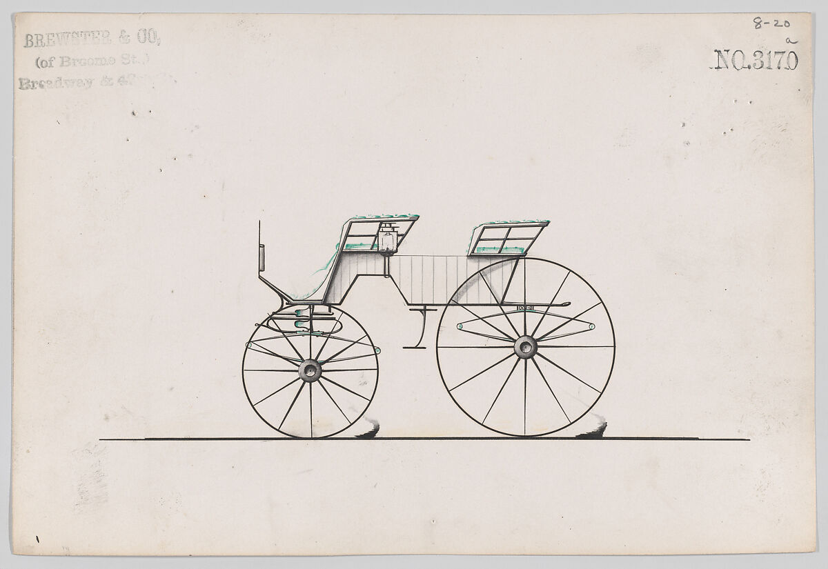 Talented draftsmen employed by the firm included Paul Steinbeck, Herman Stahmer and John Gribbon, the latter teaching at the Carriage Builders and Designers Technical School, which opened in 1880 and was housed initially at the Metropolitan Museum of Art. When the company finally dissolved in 1923, its last owner William Brewster (1866–1949) donated its archive of design and presentation drawings to the Museum where he served as benefactor and trustee.
