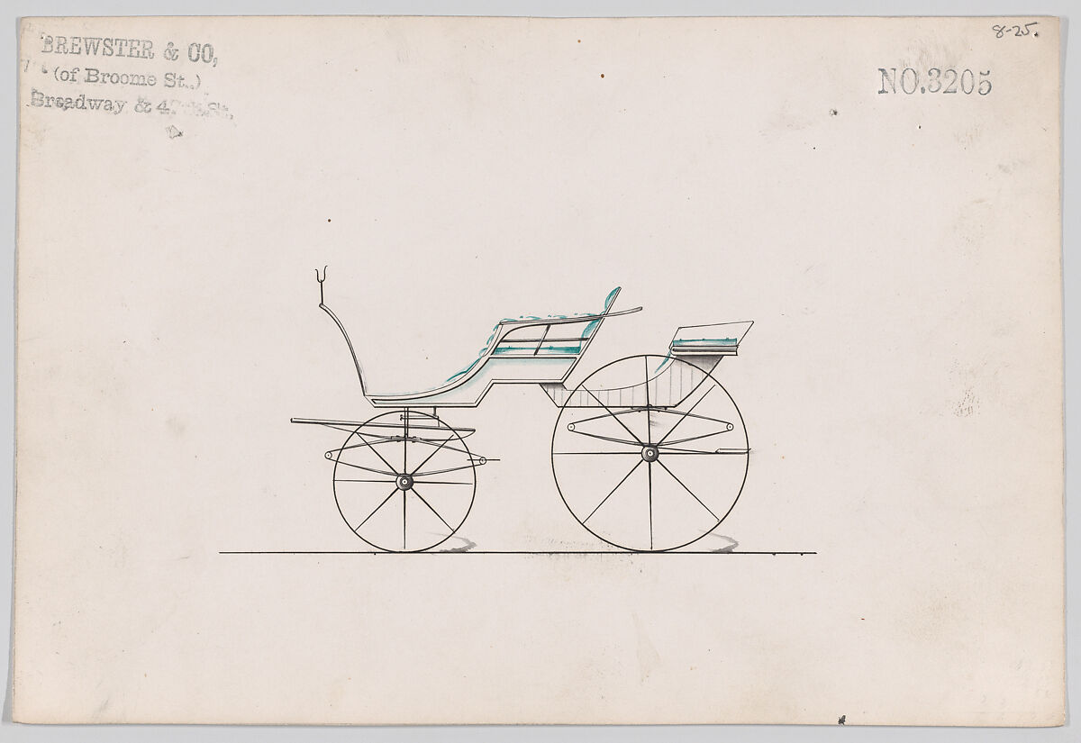 Talented draftsmen employed by the firm included Paul Steinbeck, Herman Stahmer and John Gribbon, the latter teaching at the Carriage Builders and Designers Technical School, which opened in 1880 and was housed initially at the Metropolitan Museum of Art. When the company finally dissolved in 1923, its last owner William Brewster (1866–1949) donated its archive of design and presentation drawings to the Museum where he served as benefactor and trustee.