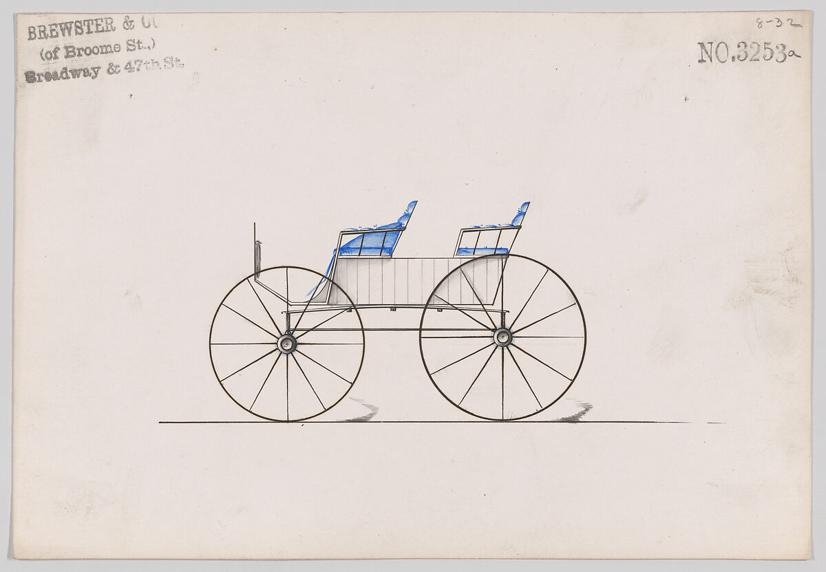 Talented draftsmen employed by the firm included Paul Steinbeck, Herman Stahmer and John Gribbon, the latter teaching at the Carriage Builders and Designers Technical School, which opened in 1880 and was housed initially at the Metropolitan Museum of Art. When the company finally dissolved in 1923, its last owner William Brewster (1866–1949) donated its archive of design and presentation drawings to the Museum where he served as benefactor and trustee.