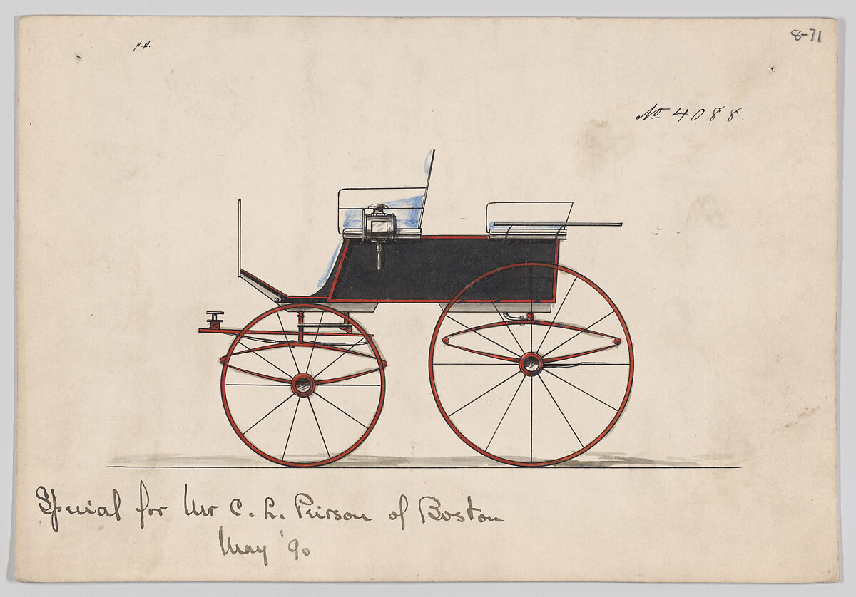 Talented draftsmen employed by the firm included Paul Steinbeck, Herman Stahmer and John Gribbon, the latter teaching at the Carriage Builders and Designers Technical School, which opened in 1880 and was housed initially at the Metropolitan Museum of Art. When the company finally dissolved in 1923, its last owner William Brewster (1866–1949) donated its archive of design and presentation drawings to the Museum where he served as benefactor and trustee.