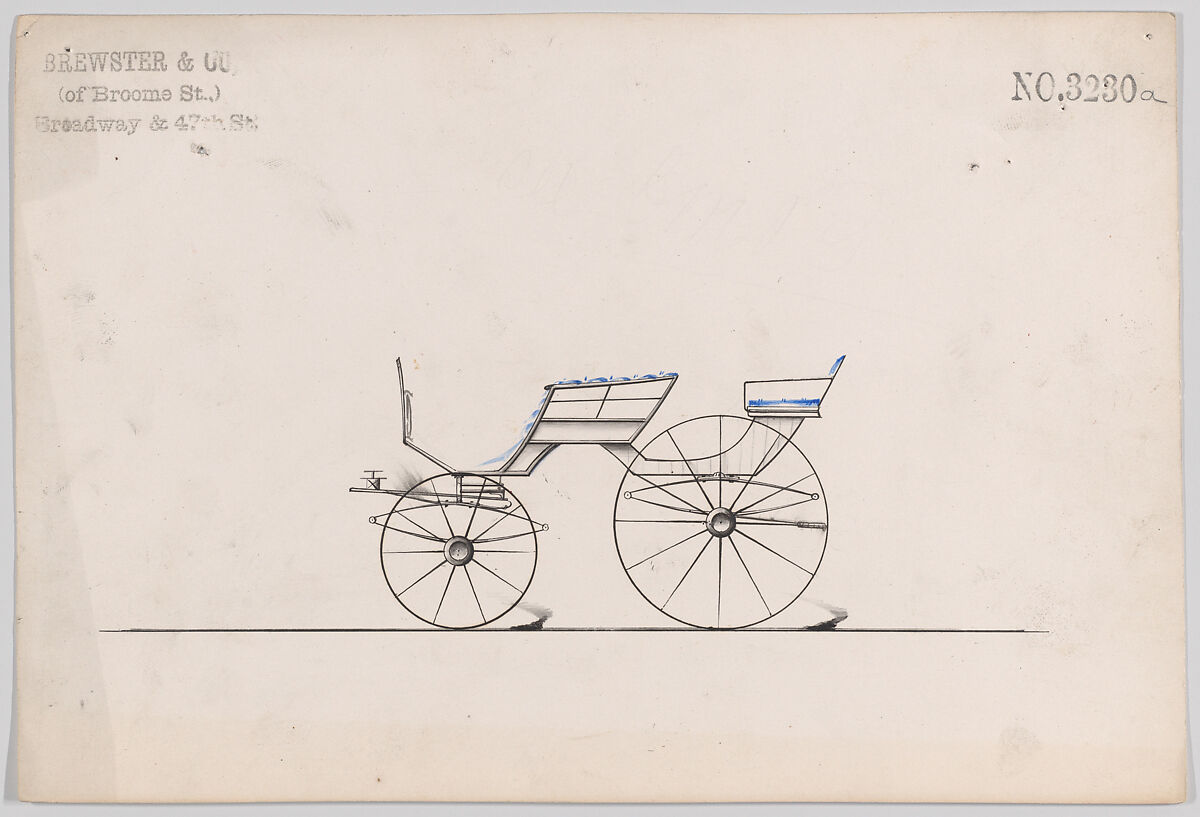Talented draftsmen employed by the firm included Paul Steinbeck, Herman Stahmer and John Gribbon, the latter teaching at the Carriage Builders and Designers Technical School, which opened in 1880 and was housed initially at the Metropolitan Museum of Art. When the company finally dissolved in 1923, its last owner William Brewster (1866–1949) donated its archive of design and presentation drawings to the Museum where he served as benefactor and trustee.