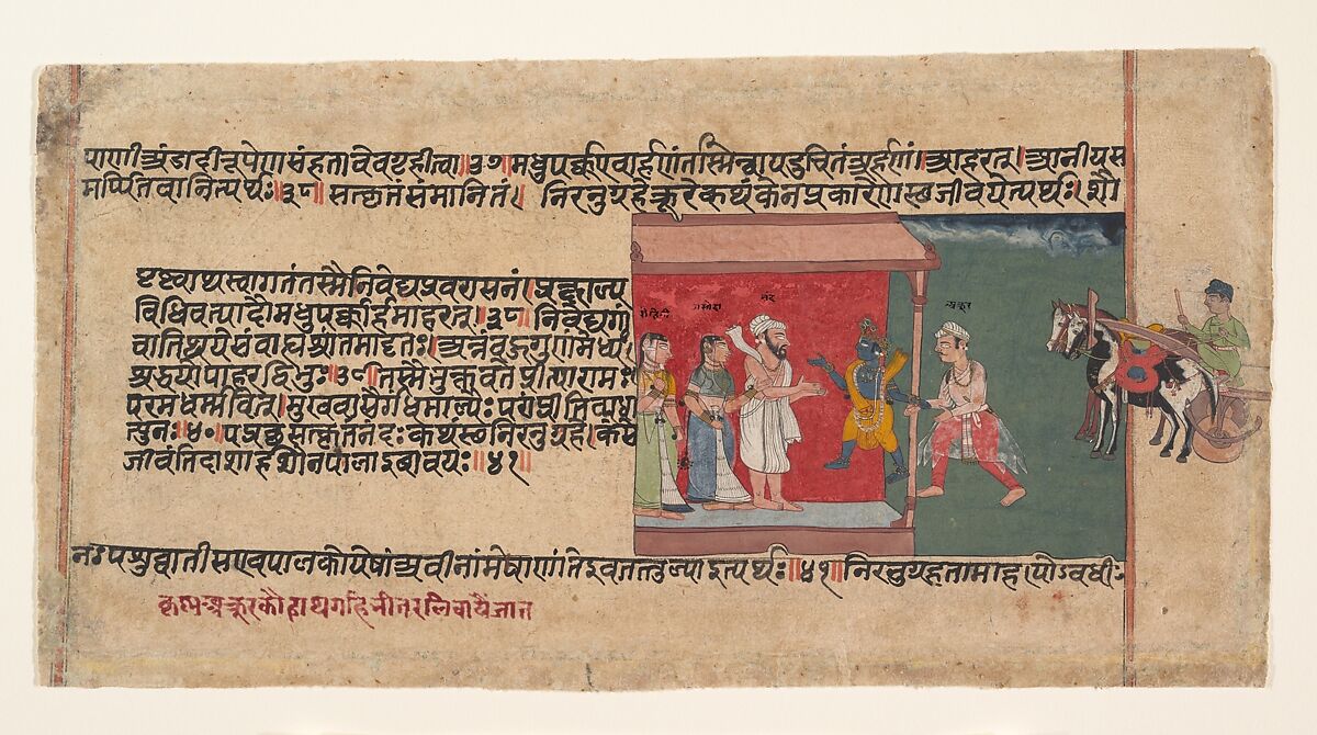 - Title: Krishna Brings the Messenger Akrura Inside Nanda’s House: Page from a Dispersed Bhagavata Purana Manuscript