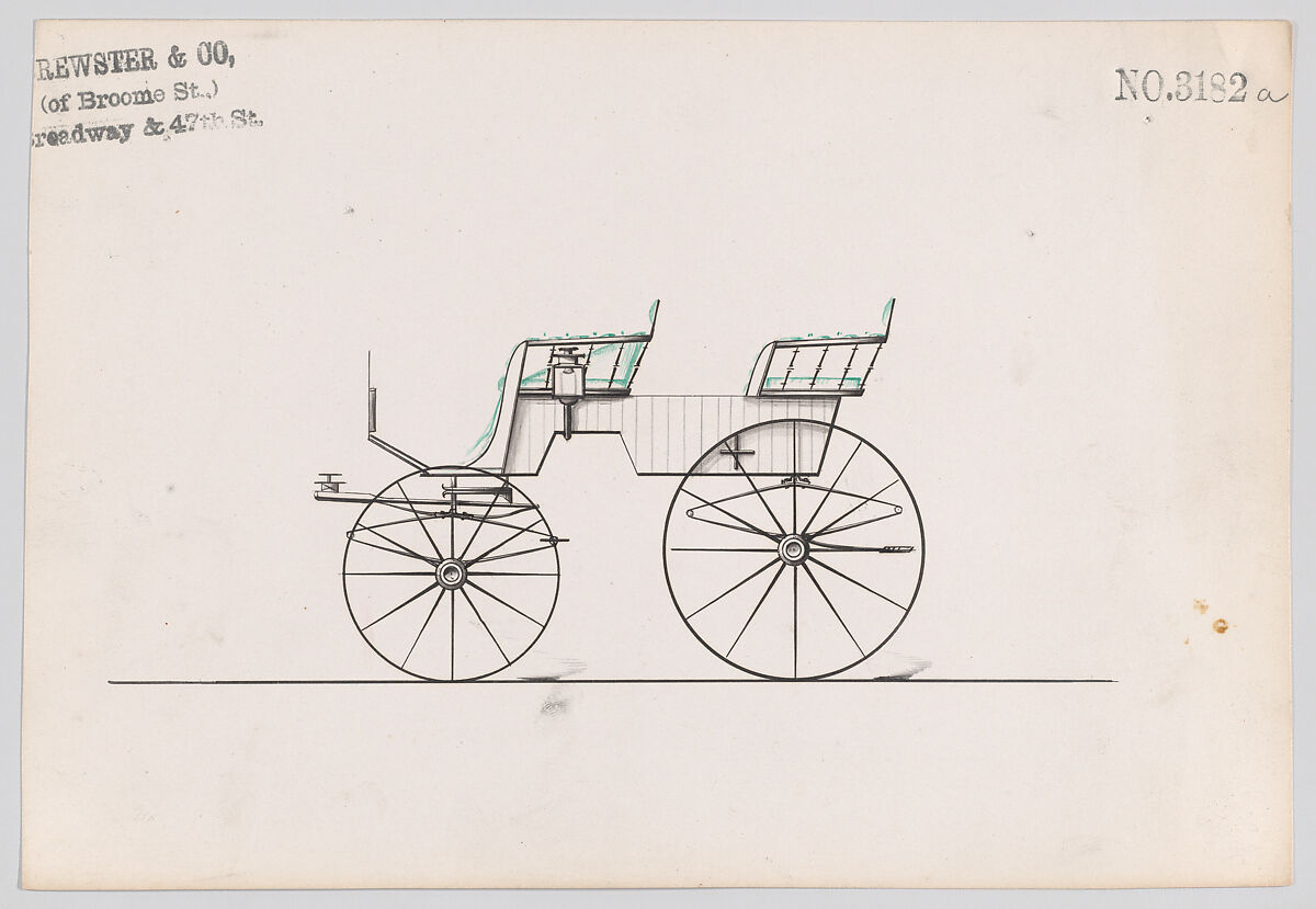 Talented draftsmen employed by the firm included Paul Steinbeck, Herman Stahmer and John Gribbon, the latter teaching at the Carriage Builders and Designers Technical School, which opened in 1880 and was housed initially at the Metropolitan Museum of Art. When the company finally dissolved in 1923, its last owner William Brewster (1866–1949) donated its archive of design and presentation drawings to the Museum where he served as benefactor and trustee.