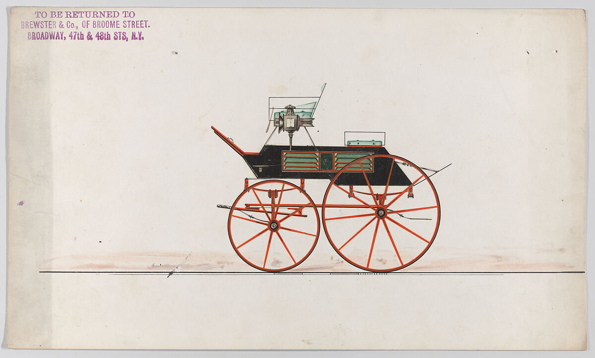 Talented draftsmen employed by the firm included Paul Steinbeck, Herman Stahmer and John Gribbon, the latter teaching at the Carriage Builders and Designers Technical School, which opened in 1880 and was housed initially at the Metropolitan Museum of Art. When the company finally dissolved in 1923, its last owner William Brewster (1866–1949) donated its archive of design and presentation drawings to the Museum where he served as benefactor and trustee.