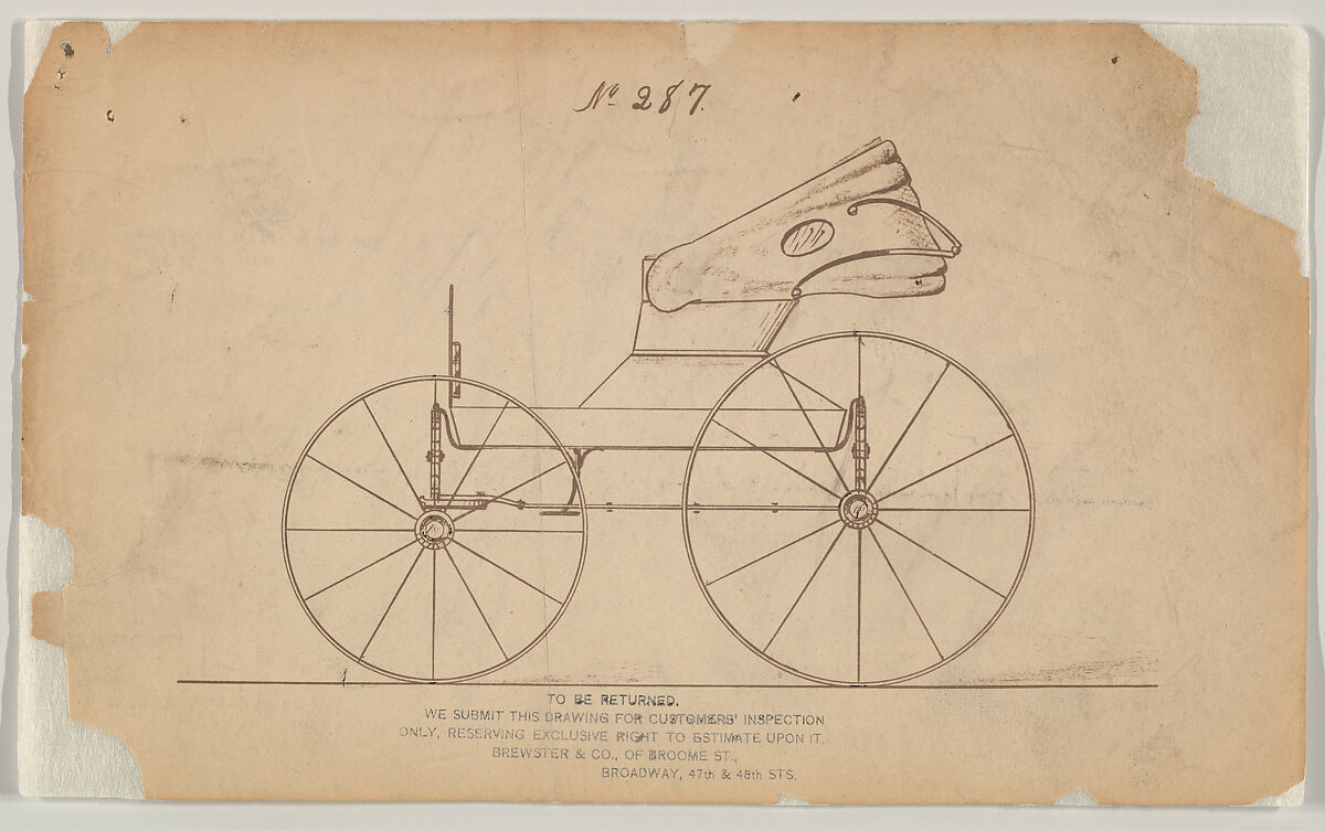 Talented draftsmen employed by the firm included Paul Steinbeck, Herman Stahmer and John Gribbon, the latter teaching at the Carriage Builders and Designers Technical School, which opened in 1880 and was housed initially at the Metropolitan Museum of Art. When the company finally dissolved in 1923, its last owner William Brewster (1866–1949) donated its archive of design and presentation drawings to the Museum where he served as benefactor and trustee.