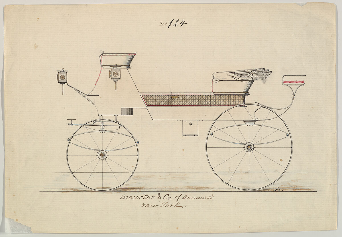 Talented draftsmen employed by the firm included Paul Steinbeck, Herman Stahmer and John Gribbon, the latter teaching at the Carriage Builders and Designers Technical School, which opened in 1880 and was housed initially at the Metropolitan Museum of Art. When the company finally dissolved in 1923, its last owner William Brewster (1866–1949) donated its archive of design and presentation drawings to the Museum where he served as benefactor and trustee.