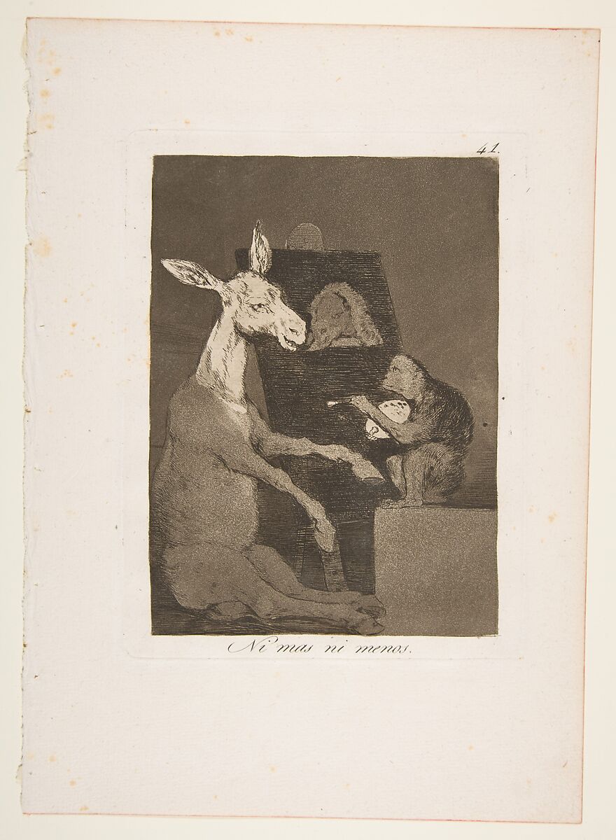 - Title:Plate 41 from "Los Caprichos": Neither more nor less (Ni mas ni menos)