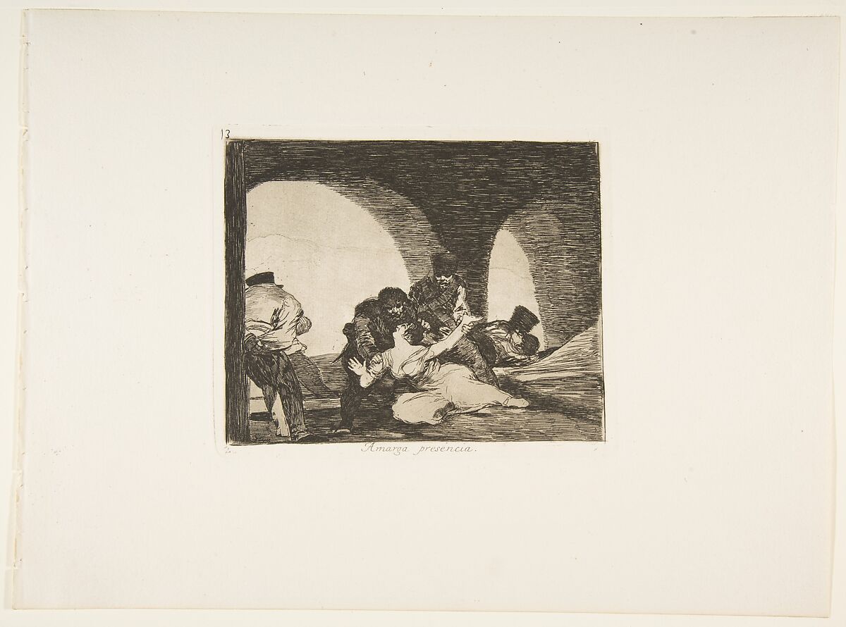 - Title: Plate 13 from "The Disasters of War" (Los Desastres de la Guerra): 'Bitter to be Present' (Amarga presencia)