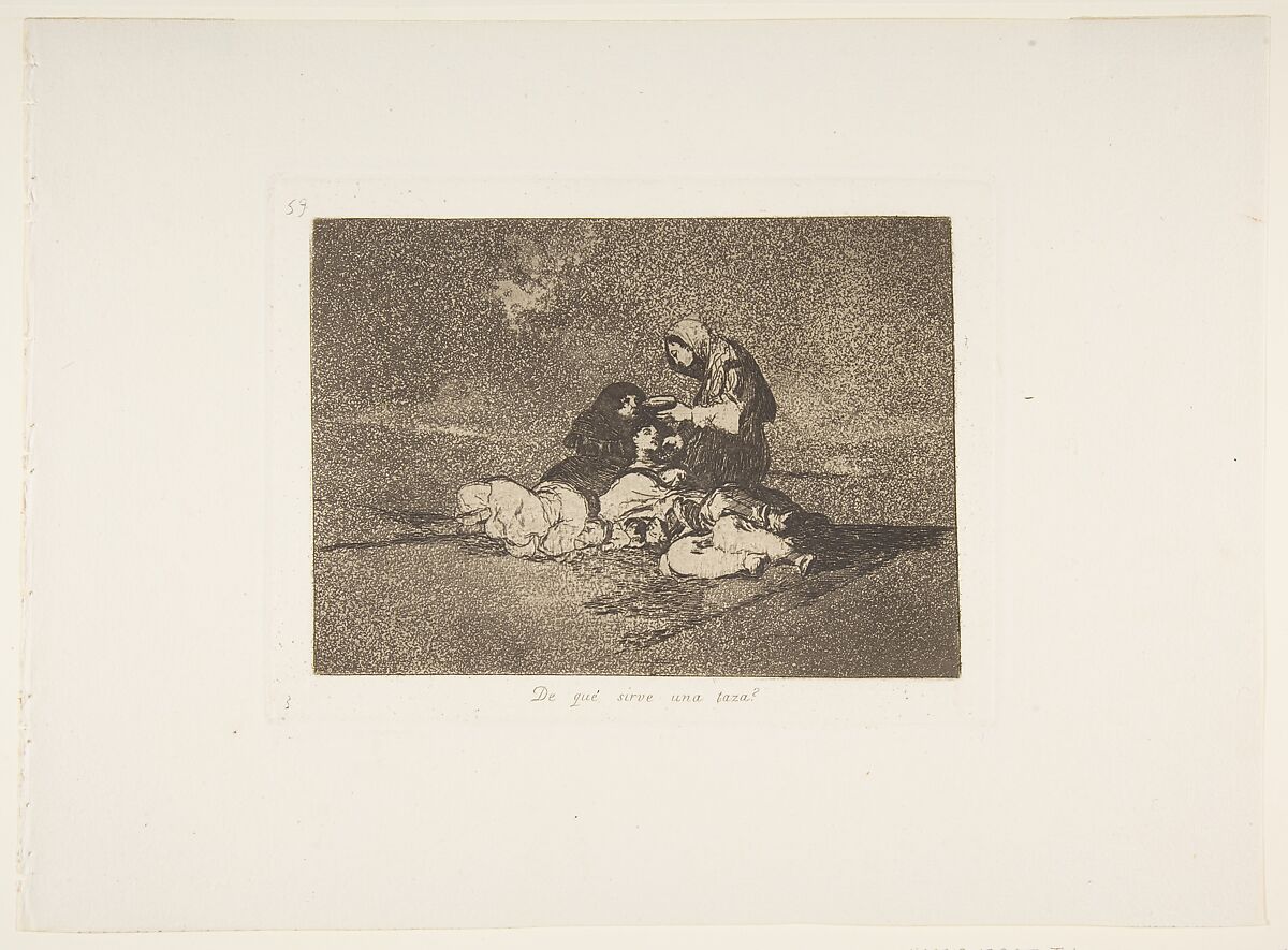 - Title: Plate 59 from "The Disasters of War" (Los Desastres de la Guerra): 'What is the use of a cup?' ( De qué sirve una taza?)
