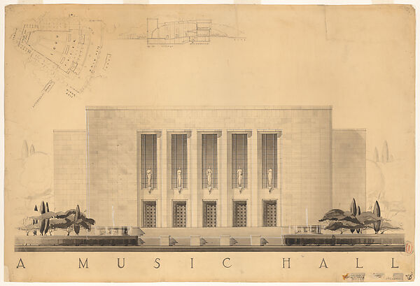 This drawing is part of a group of drawings donated to the Museum by the National Institute for Architectural Education (now the Van Alen Institute). The institute was founded in 1894 as the Society of Beaux-Arts Architects by a group of alumni from the École des Beaux-Arts in Paris to promote and advance architectural practice in the United States of America. Alongside a series of courses, the Society initiated various competitions and awards, of which the so-called Paris Prize, first awarded in 1904, was the most prestigious. The winner of the annual competition was given the opportunity to study at the École in Paris for a year. With the exception of the war years, from 1915 to 1918 and 1941 to 1946, the prize was awarded annually up until 1995. The Met collection holdings contain 78 prize-winning designs for public buildings, monuments and urban planning by 24 architects from the period between 1907 and 1947.