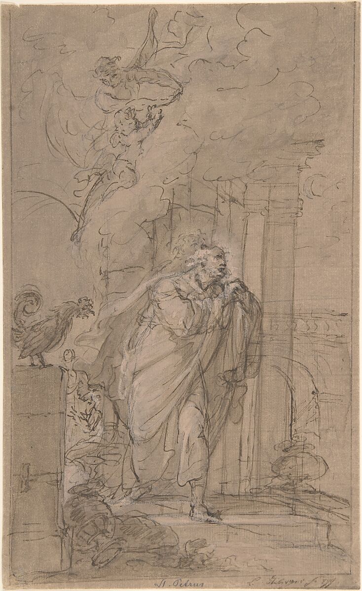 - Medium: Pen and brown ink, brush and brown wash, heightened with pink-white bodycolour, over a sketch in graphite or black chalk; framing lines in pen and brown ink (?), by the artist