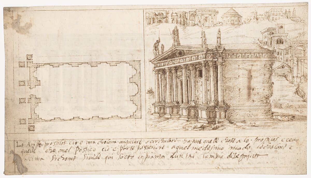 - Title: Recto: Temple Types: Amphiprostyle (Vitruvius, Book 3, Chapter 2, no. 4); Verso: Temple Types: Pseudodipteral (Vitruvius, Book 3, Chapter 2, no. 6).