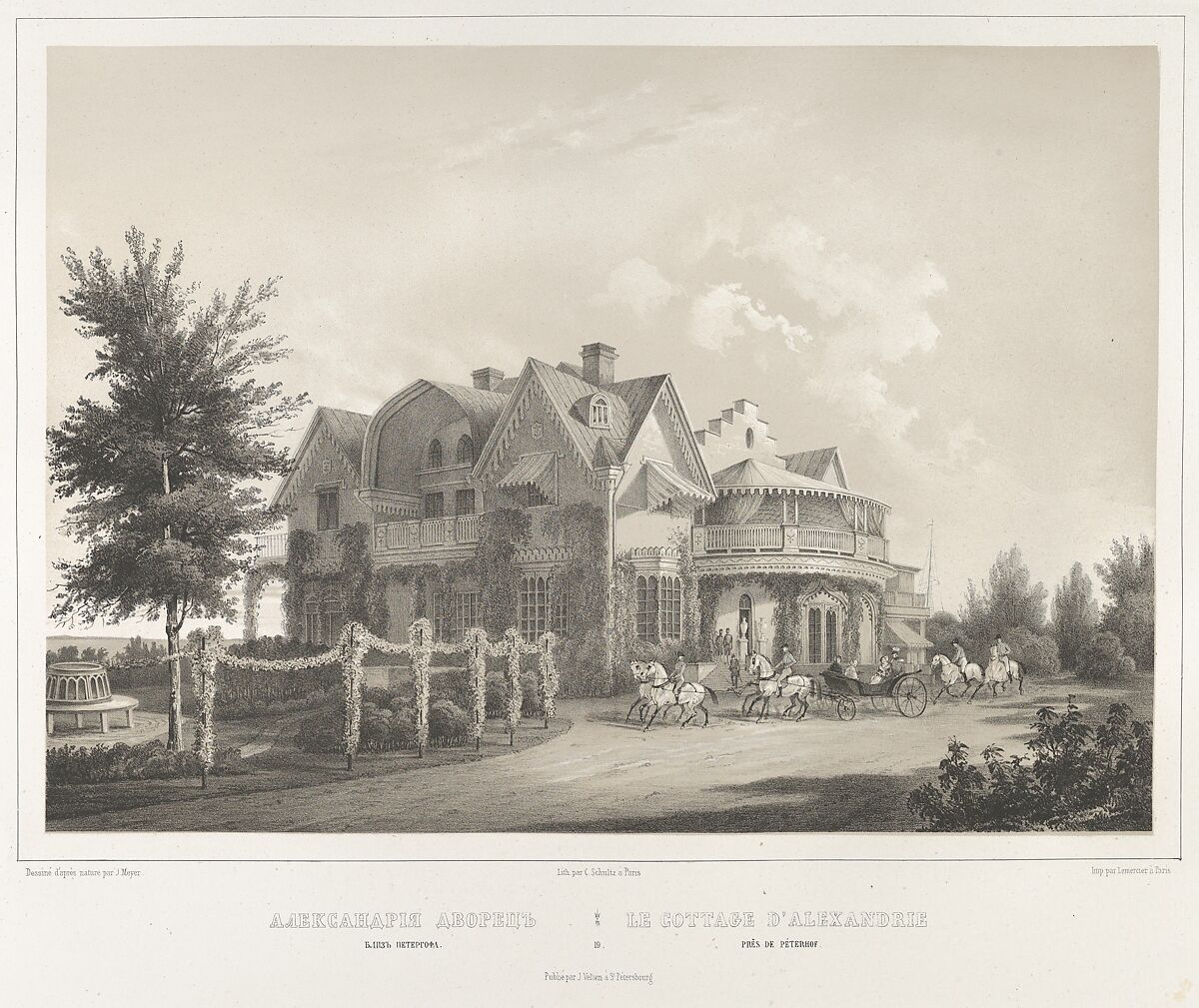 - Title: Le Cottage D'Alexandrie près de Péterof, from "Vues pittoresques des palais & jardins impériaux aux environs de St. Petersbourg"