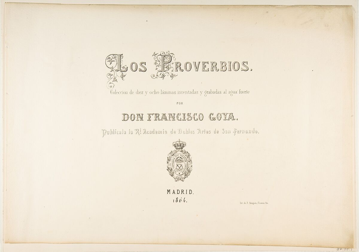 From the posthumous first edition published by the Academia de San Fernando in Madrid in 1864 under the title 'Los Proverbios'.