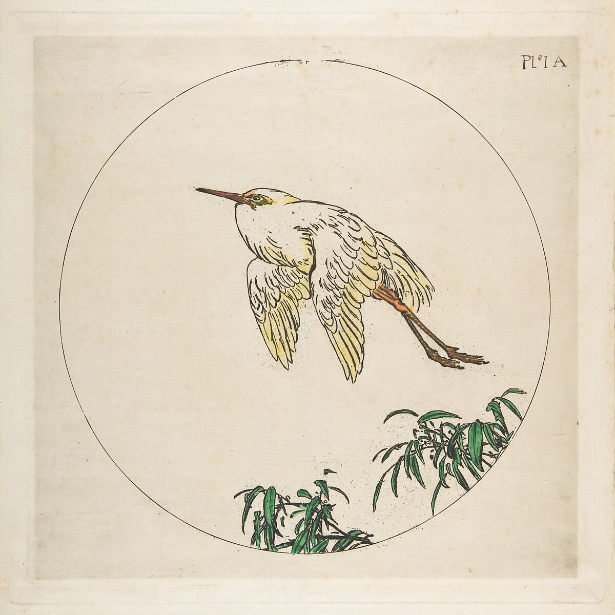 - Title: Decoration for a Plate: An Egret Flying Above Bamboo Branches