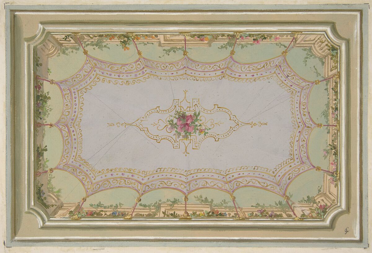 • Title: Design for the painted decoration of a ceiling with a trompe l'oeil canopy and roses