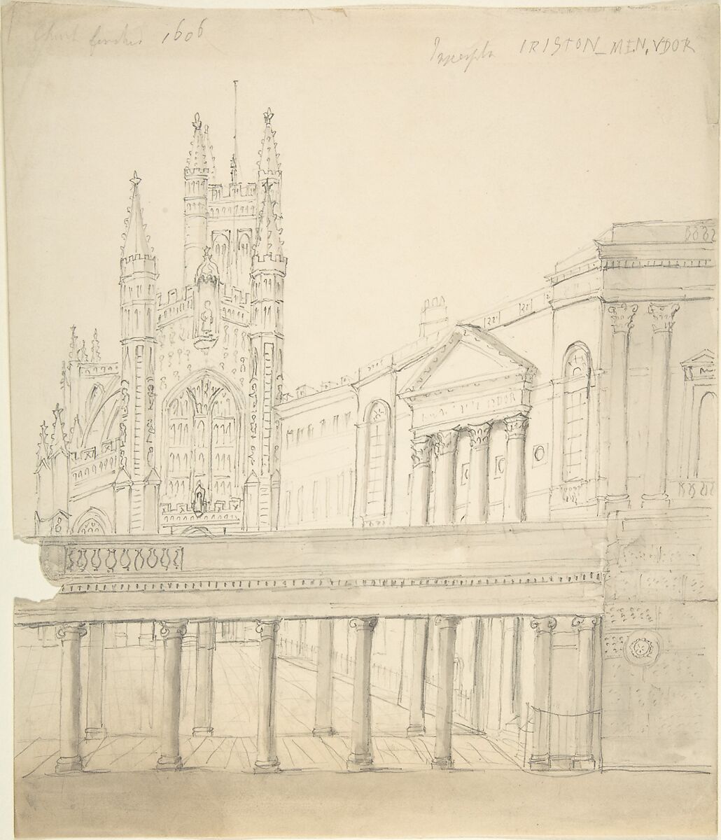 - Title: View of the Abbey and Great Pump Room at Bath, Through the Colonnade Added by Thomas Baldwin, 1786-9