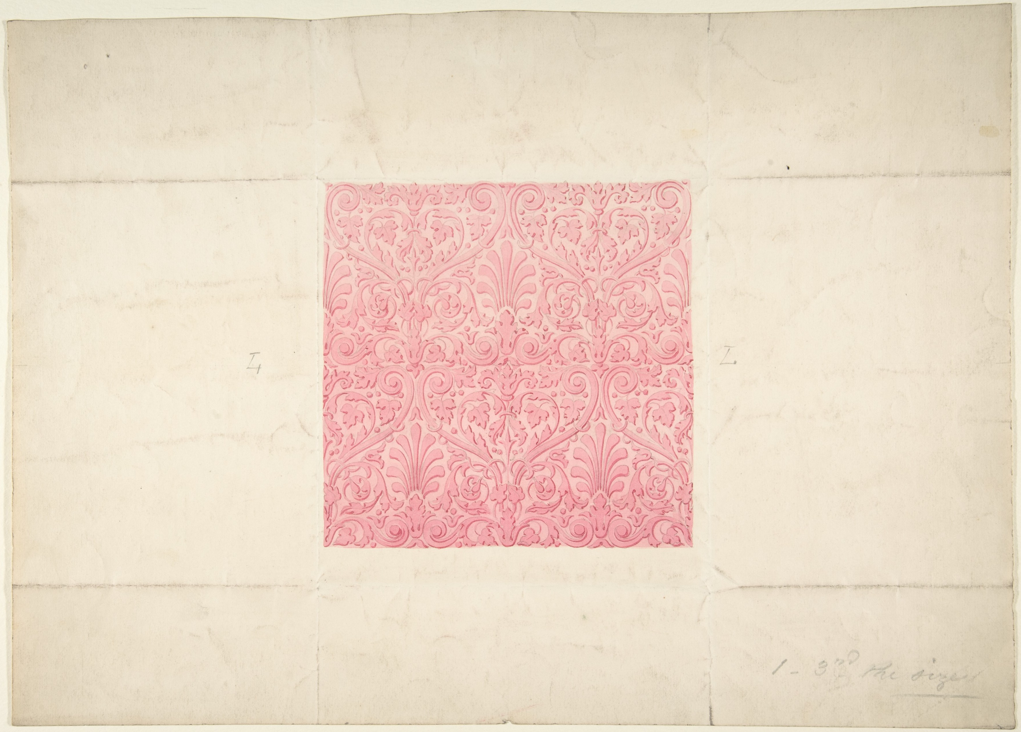 Design for Ornament, possibly Flocked Wallpaper, Anonymous, British, 19th century, Watercolor
