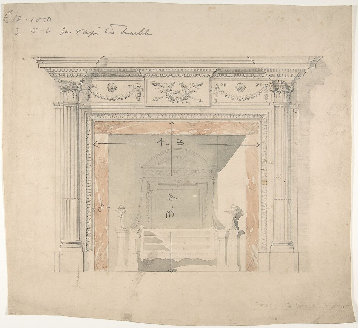 - Title: Design for an Adam-style Mantel, with a Marble Surround and Iron Firebox