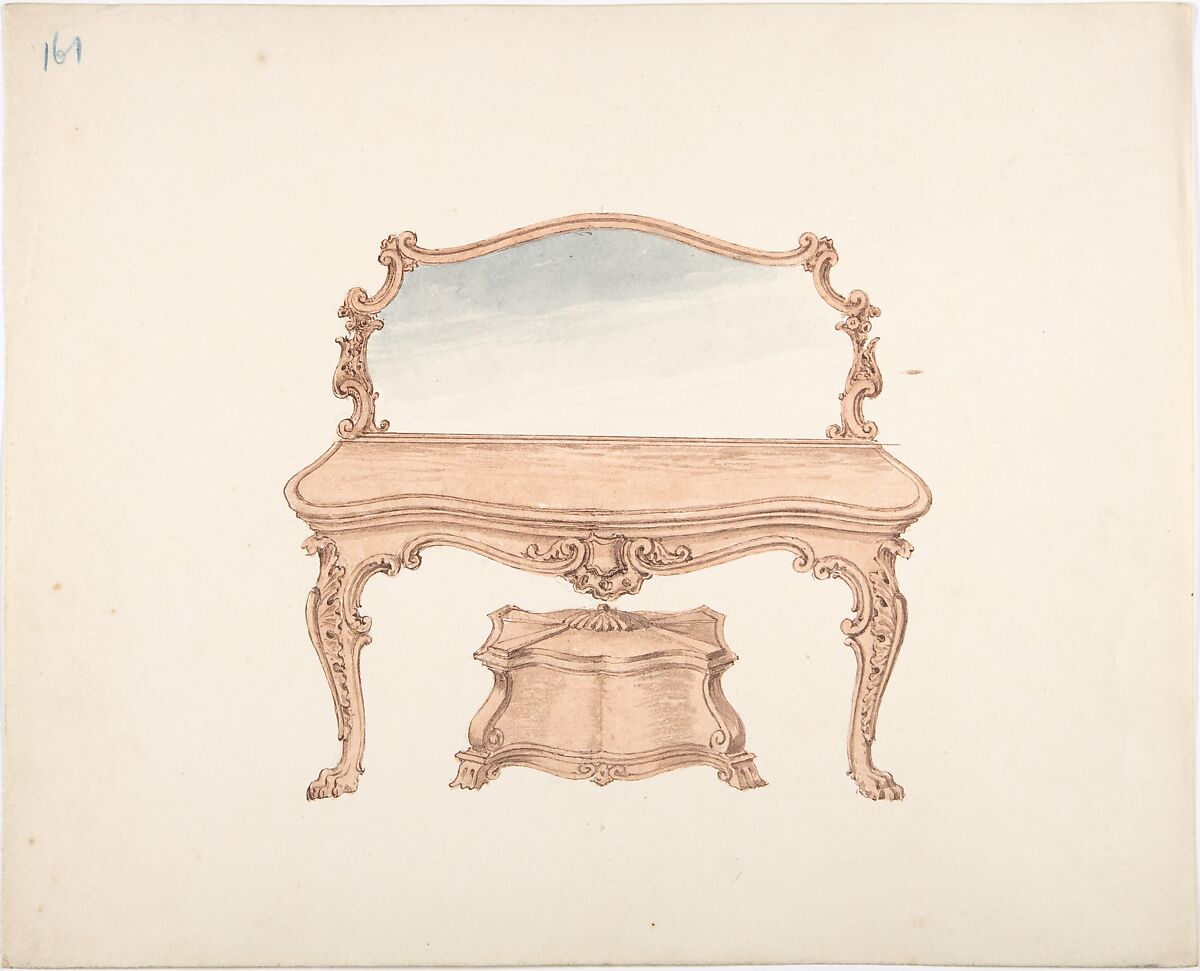 - Title: Design for a Mirrored Dressing Table with Baroque Ornament, and a Casket