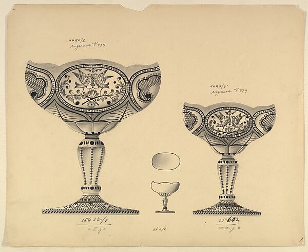 - Title: Design for Two Engraved Glass Dishes Decorated with Love Birds