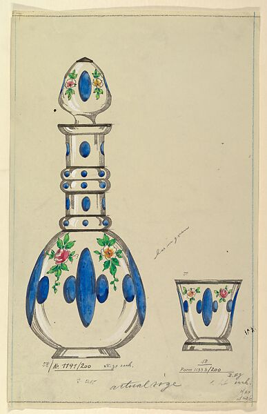 - Title: Design for a Glass Bottle and Tumbler with Painted Decorations