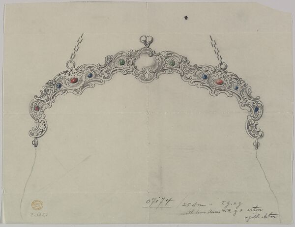 - Title: Design for a Silver Clasp for a Purse, adorned with Semi-precious Stones and a Chain