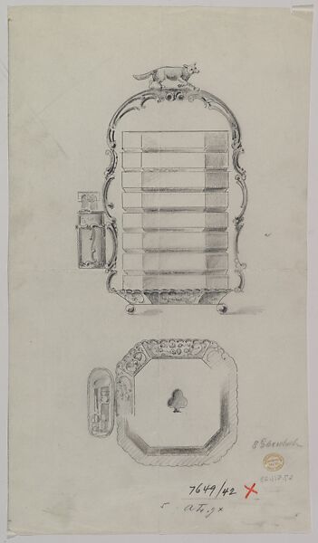 - Title: Design for a Set of Glass Coasters in a Silver Holder Adorned with a Fox