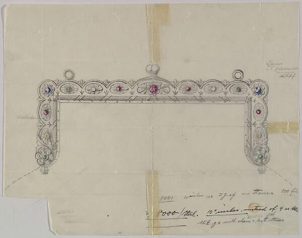 - Title: Design for a Silver Clasp for a Purse Adorned with Semi-precious Stones